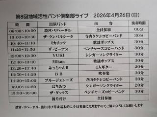 バンド連絡 次回練習日 2026 3月8日(日) 13:00〜16:00 ALF セットリスト ![]() |